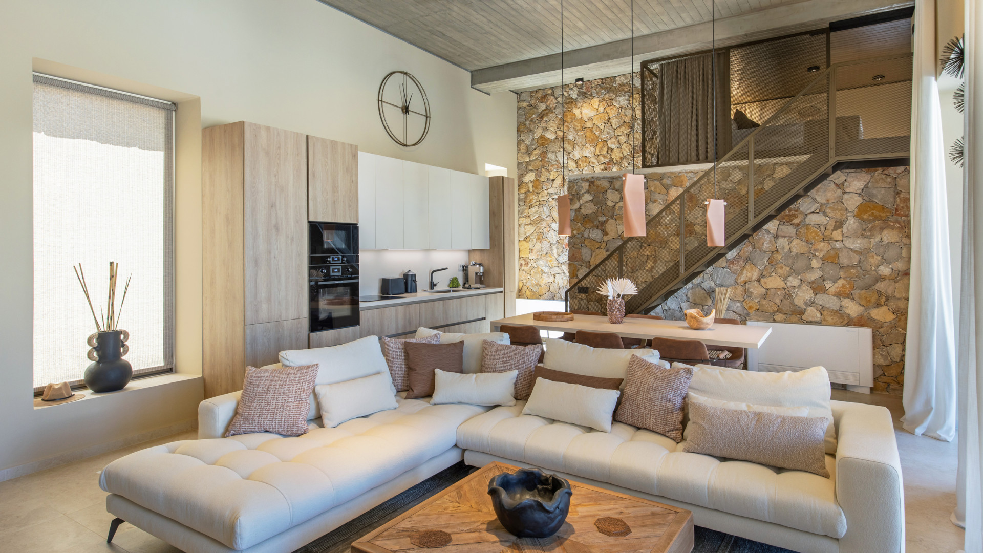 Bamboo’s interiors showcase a fresh and modern style, with a warm color palette and decor choices that may feel somewhat unexpected for a seaside home in this setting. Every space is carefully designed to be both inviting and comfortable, with meticulous attention to detail and all modern amenities subtly integrated without being intrusive. In addition to two bedrooms in the main house, the property features a unique loft-style bedroom accessible from the living room, ideal for children or young guests. There is also a fully independent bedroom, perfect for couples or visiting guests who value their privacy.