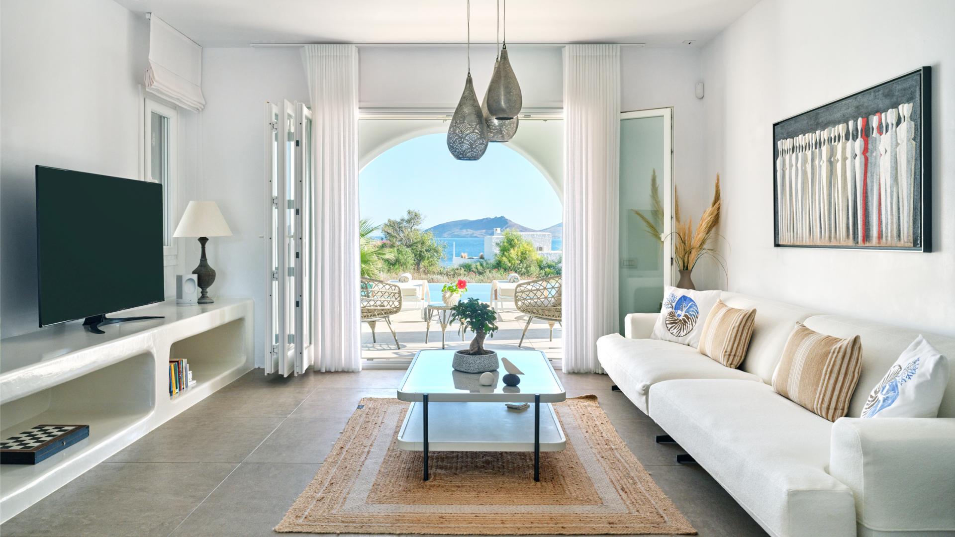 Great Turquoise enjoys beautiful views of the Aegean Sea, spanning across to the island of Naxos and is perfectly positioned, being only a short distance to beaches and the charming town of Naoussa.