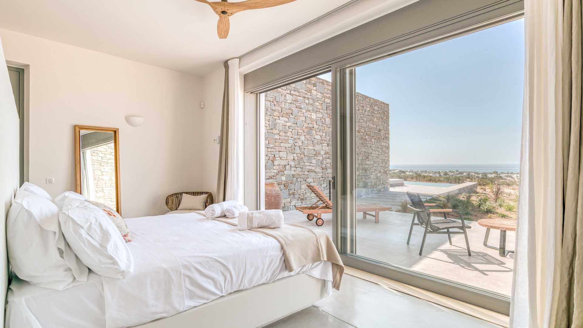Discover an exquisite retreat in the southern part of Paros, where this newly built five bedroom villa awaits. Elegantly designed to blend modern sophistication with Cycladic charm, Villa Hestia offers breathtaking views of the Aegean Sea. Each of the five bedrooms feature en-suite bathrooms, high-end finishes, and large windows that invite ample natural light and showcase the stunning surroundings.