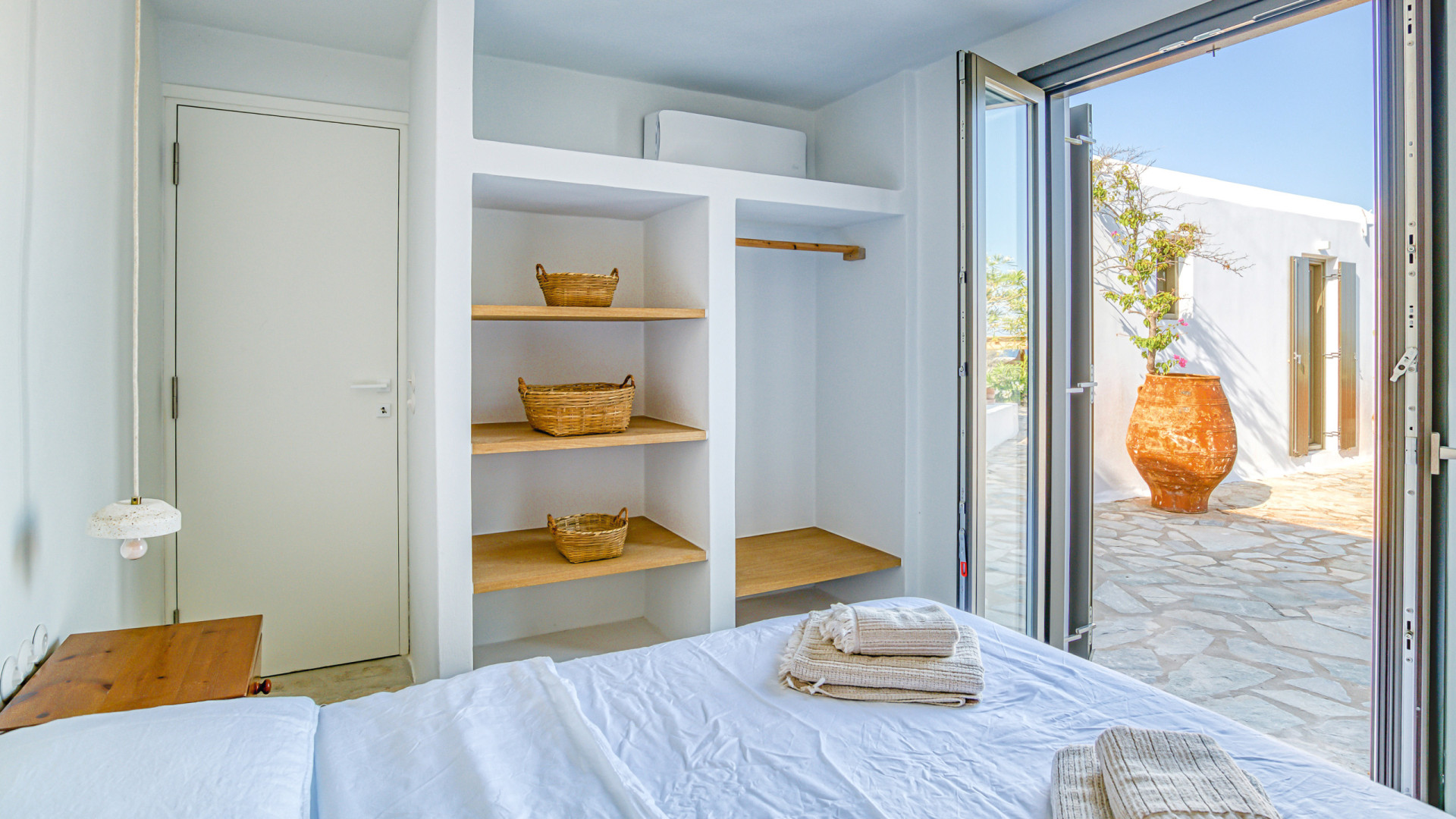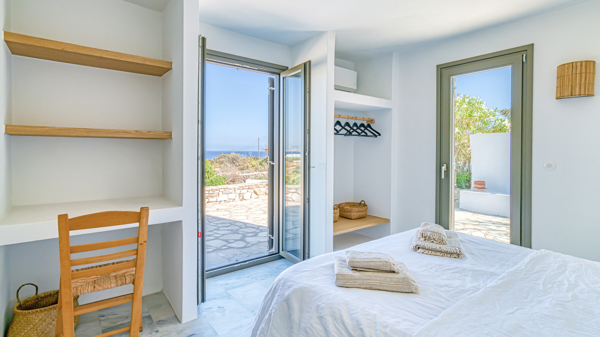 2 Guests1 Guest Bedroom with double bed, A/C, private separate bathroom with shower, direct access to outside, sea view