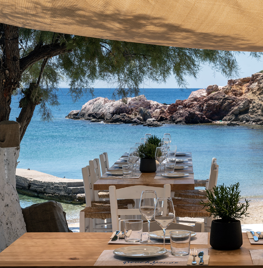 Antiparos is an island that retains a certain wild charm, with only a couple of organized beaches. Kiwi enjoys the great privilege of being located just above one of them: Soros Beach, which is only about 500 meters away and can be easily reached with a pleasant walk.