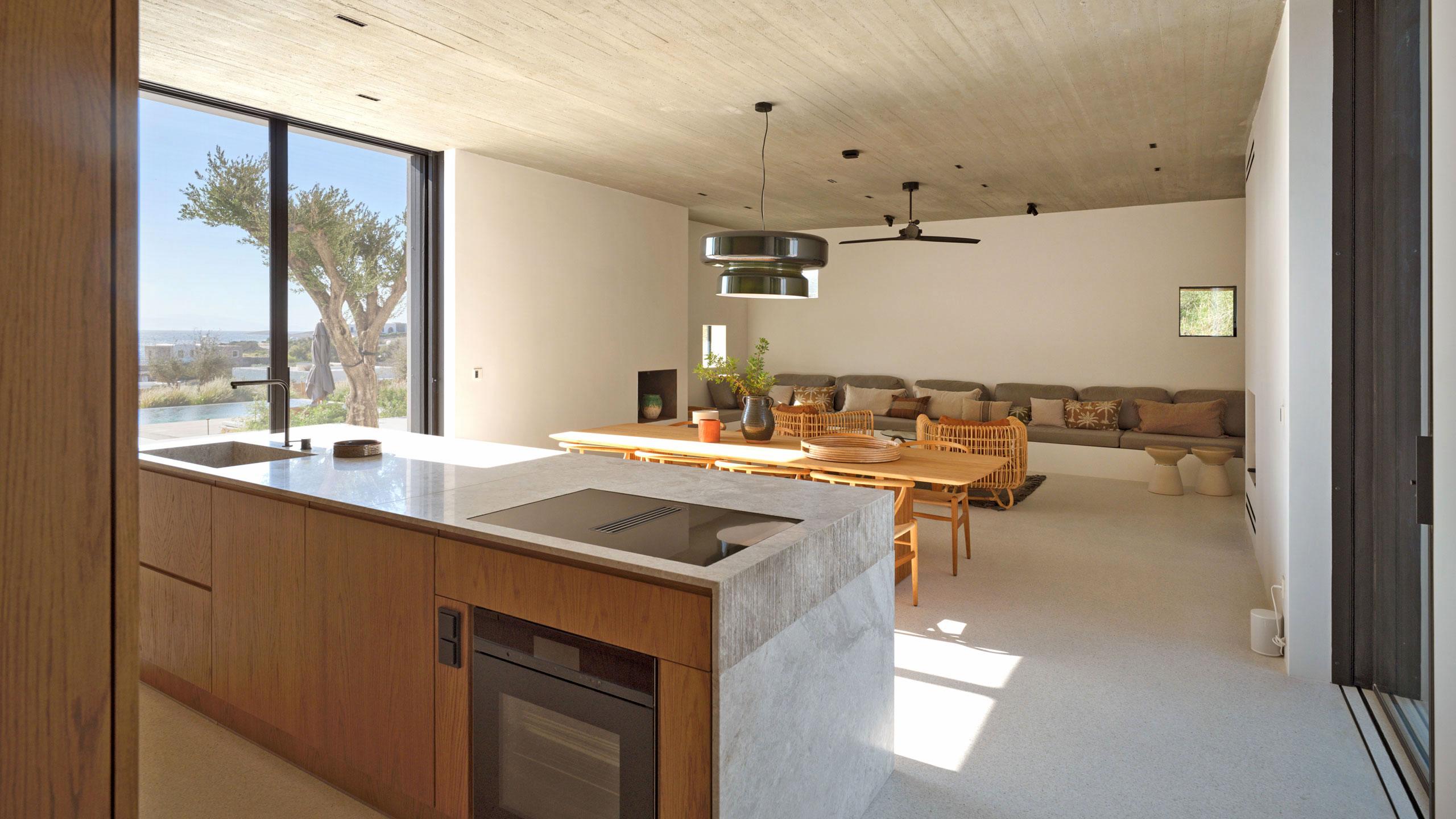The heart of the villa is a sprawling open-plan living area that integrates a modern indoor kitchen and dining space for effortless entertaining. Culinary enthusiasts will thrive in the professional outdoor kitchen, which comes fully equipped with a barbecue, bar, and dual refrigerator drawers for poolside hosting. To ensure total comfort, every room is outfitted with air conditioning and ceiling fans, while a dedicated service kitchen in the basement keeps the main living areas pristine.