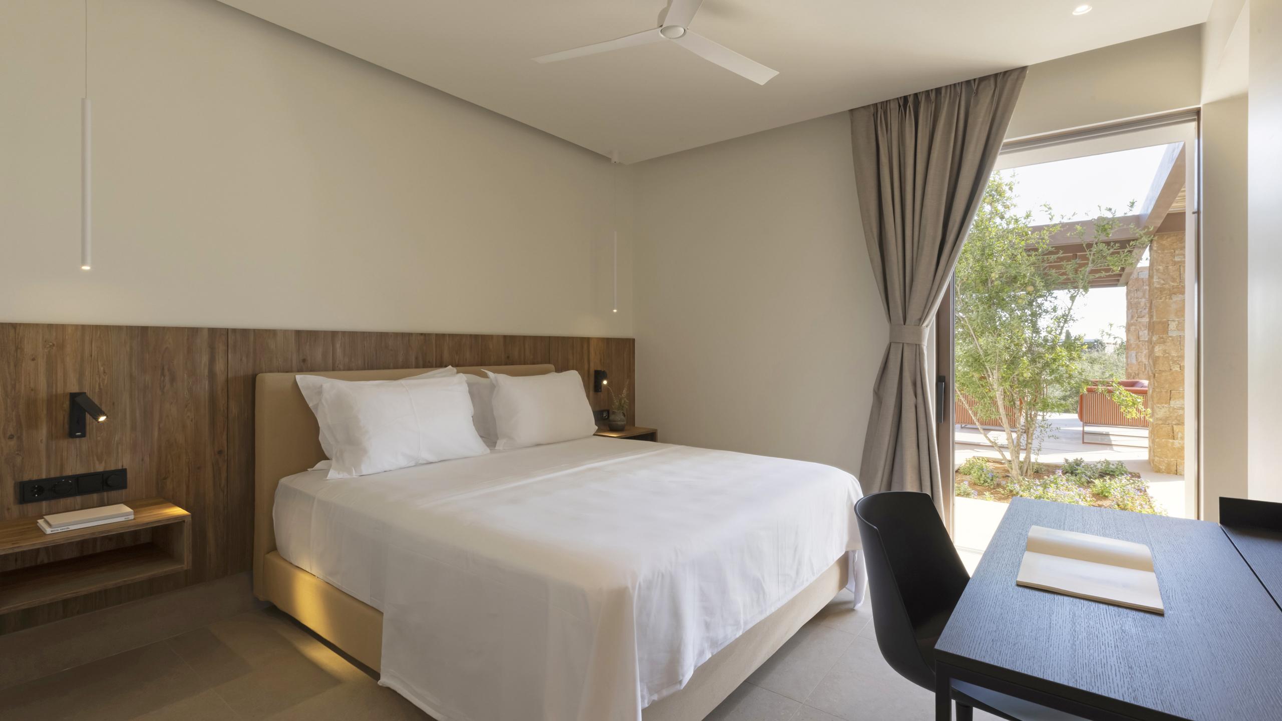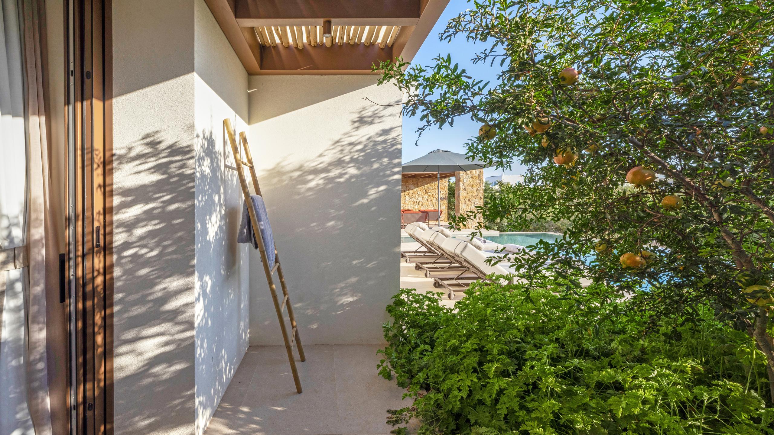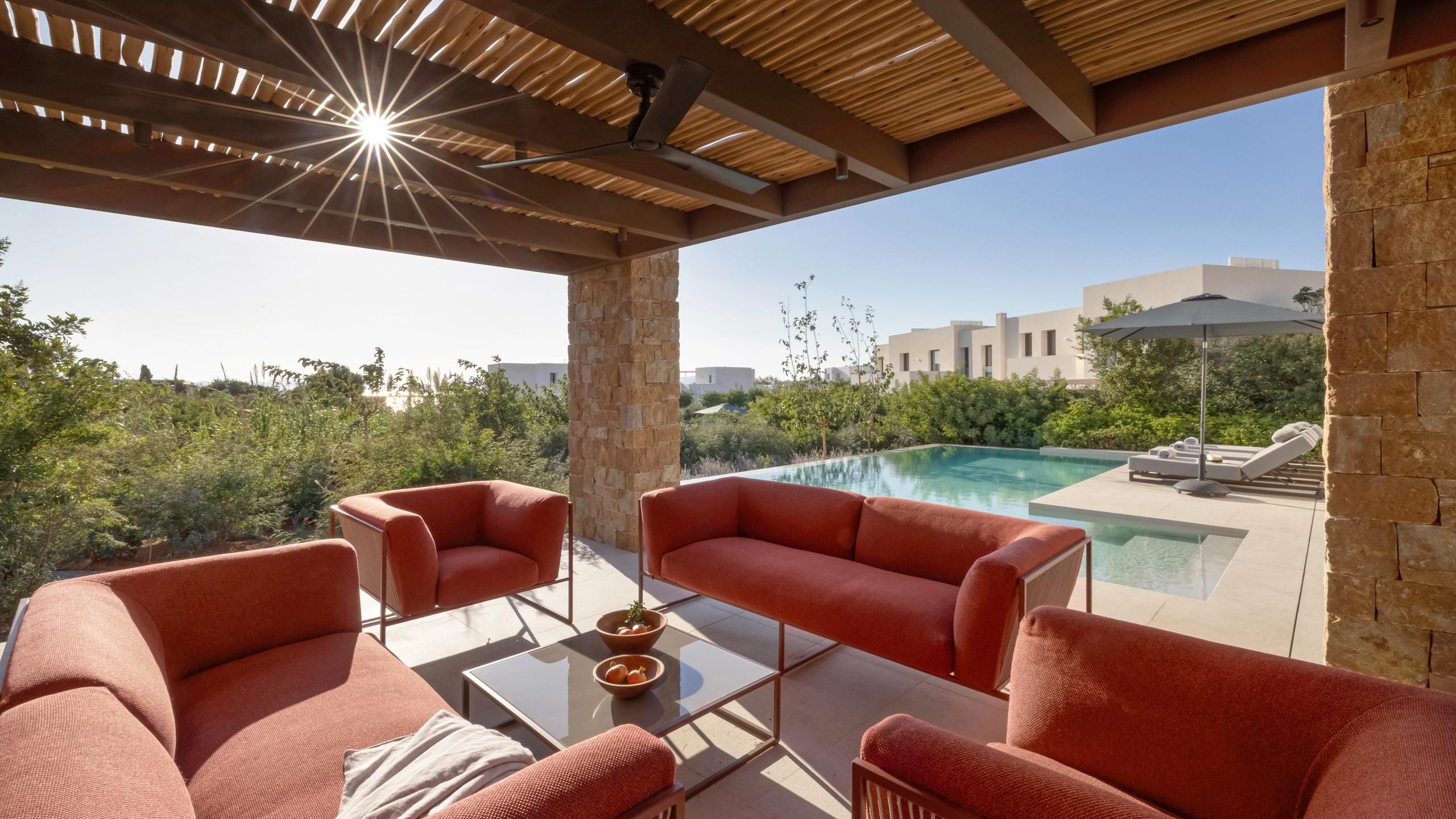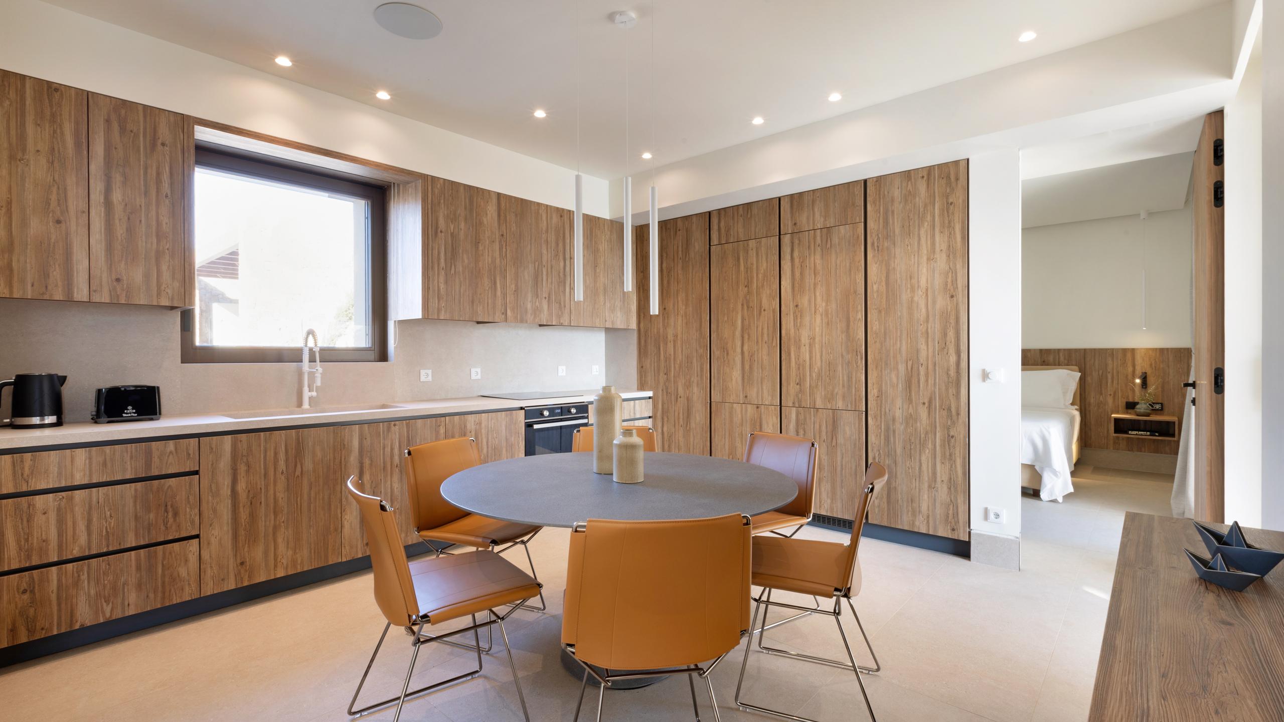 The villa’s prime location provides direct access to the sea and the nearby charming village of Aliki. It serves as a perfect retreat for small families or couples looking to balance coastal adventure with peaceful seclusion. Every detail ensures a seamless transition between the stylish interiors and the Mediterranean landscape.