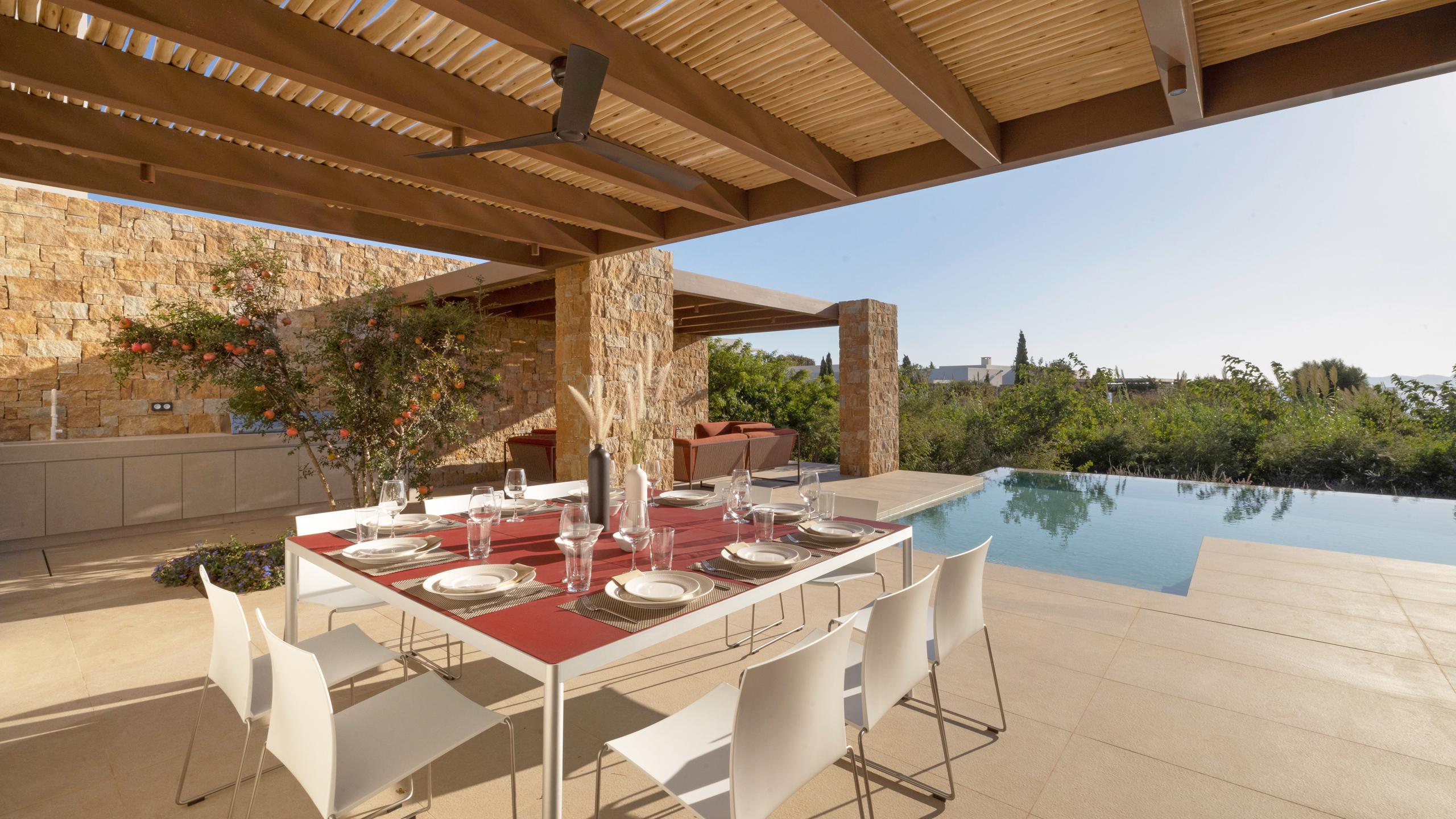 Davis is a graceful residence - part of a 5-villa estate - designed for privacy and effortless living, featuring two comfortable bedrooms and three bathrooms. The outdoor space includes an inviting pool, a landscaped garden, and a dedicated barbecue dining area for relaxed summer days. A standout feature is the rooftop lounge, which offers an expansive setting for stargazing and evening relaxation.