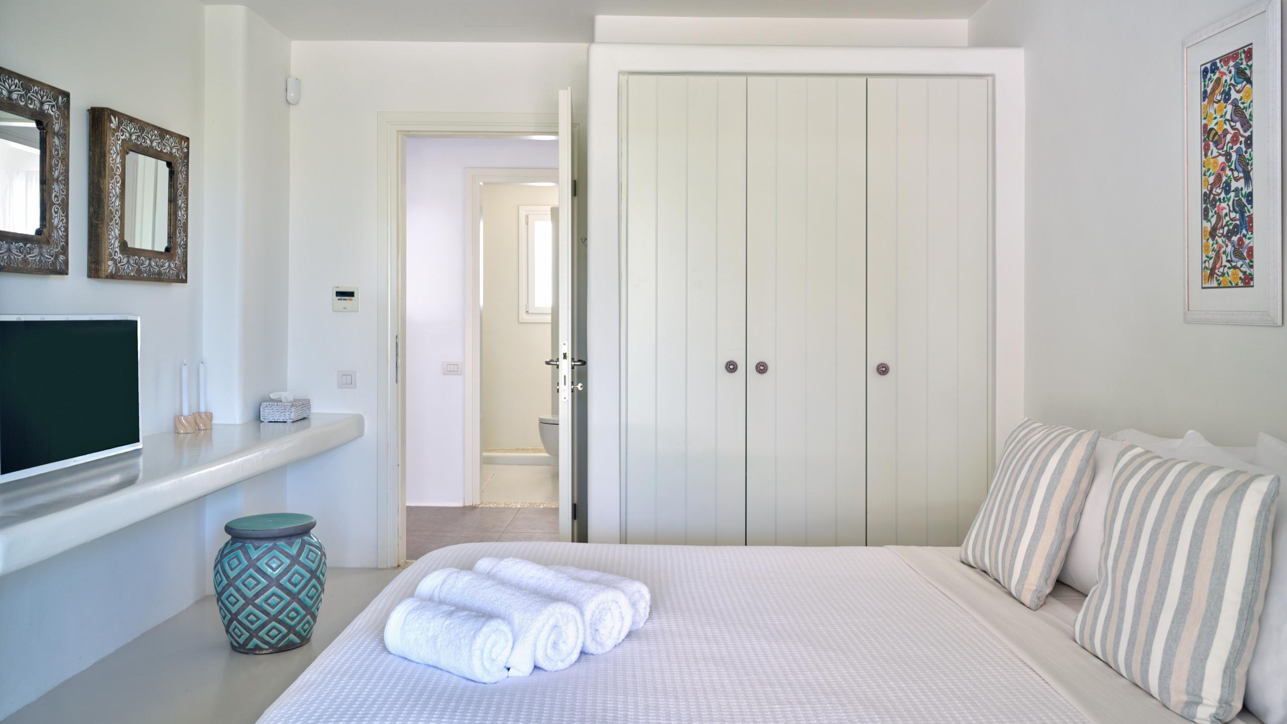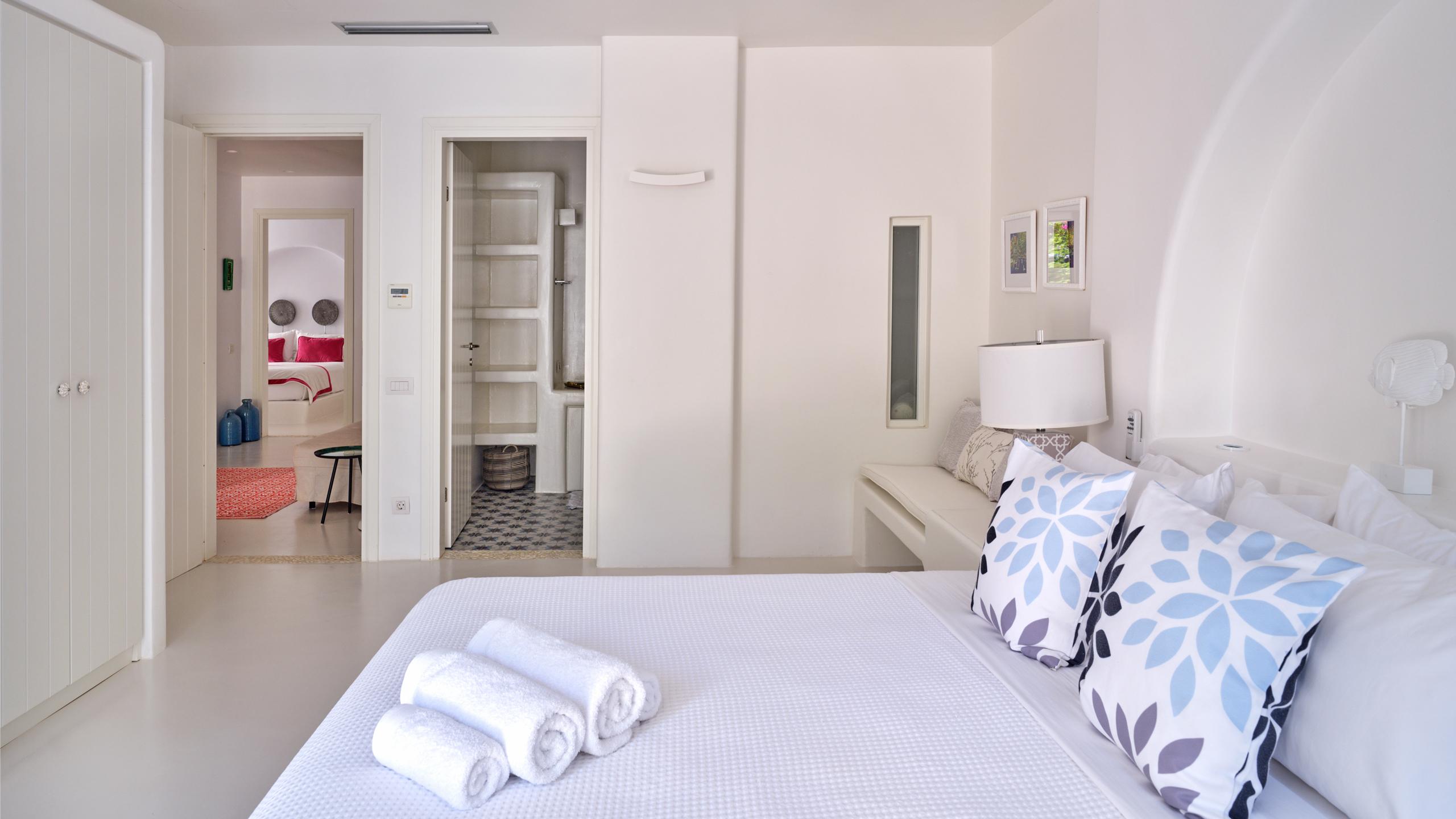 1 Guest Bedroom with double bed, A/C, en-suite bathroom with shower, sea view, direct access to pool terrace