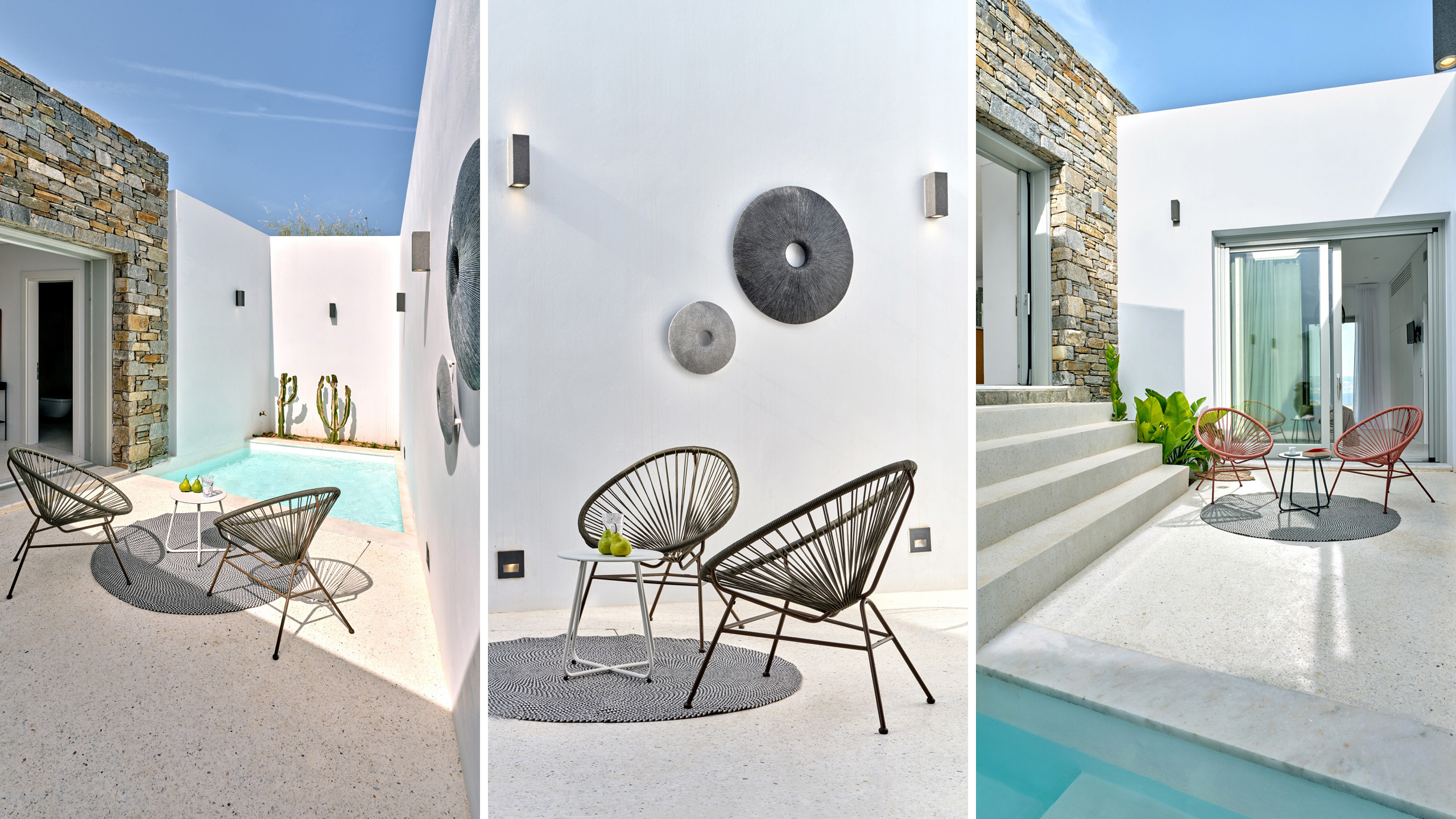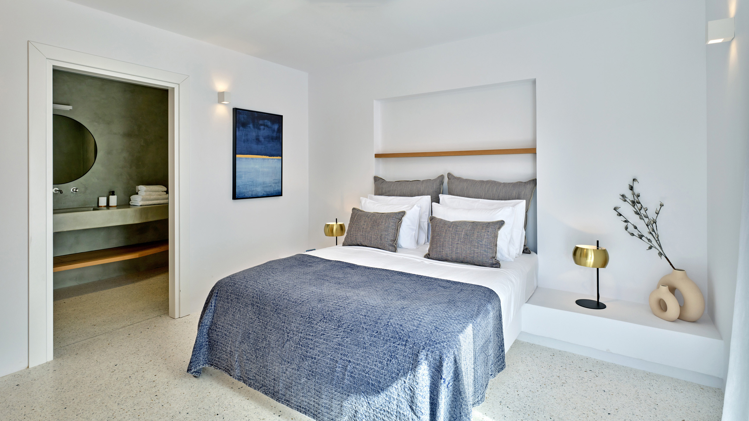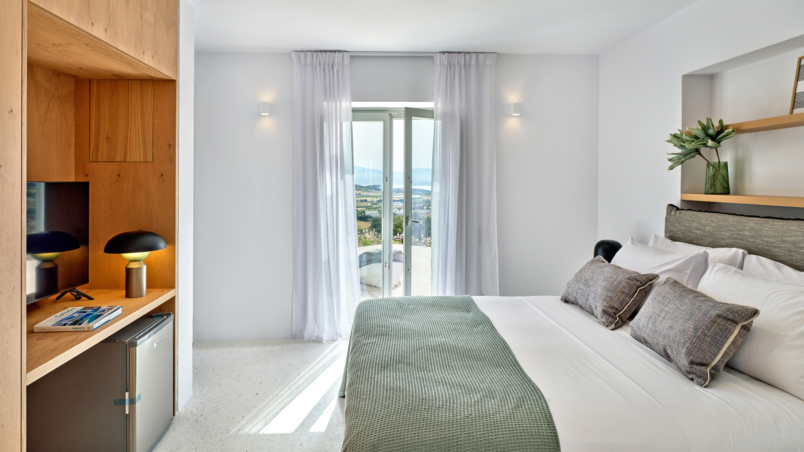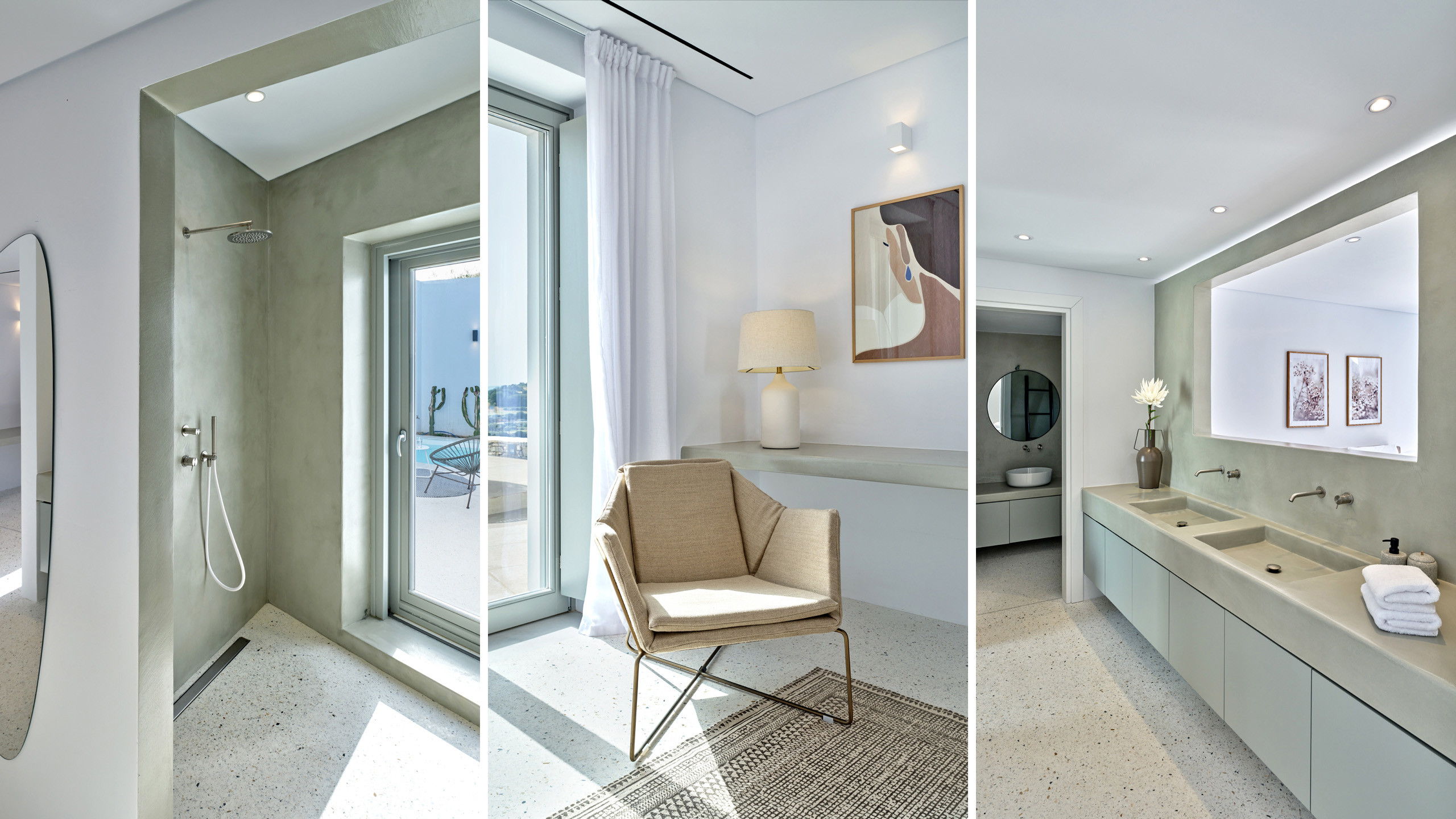 Recently completed, Villa Kulmus is modern in design and is privately located close to the popular, cosmopolitan town of Naoussa. The impressive house design flows effortlessly between indoor and outdoor living areas, enjoying Aegean Sea views across to the island of Naxos.
