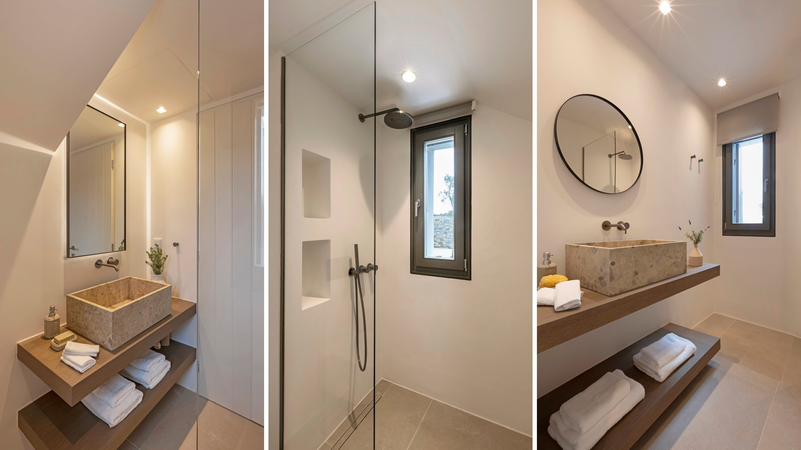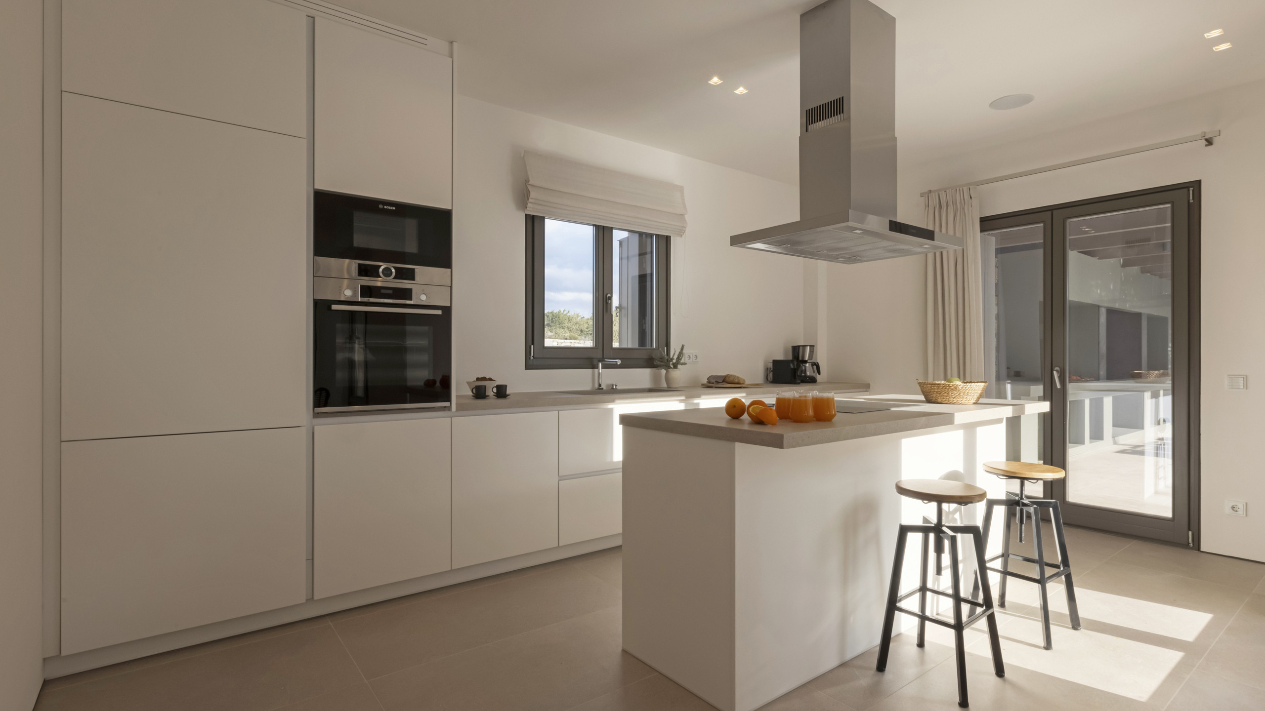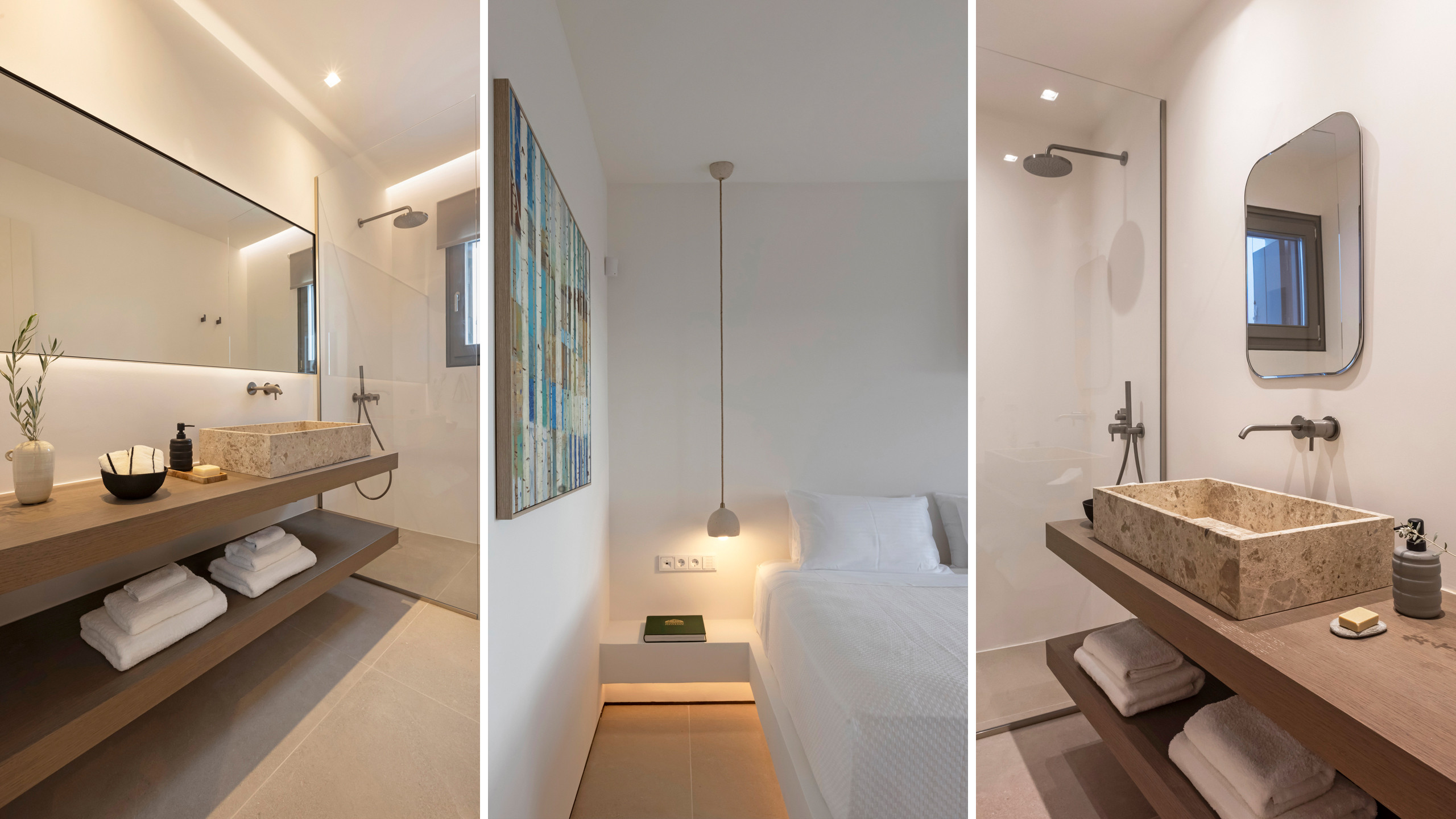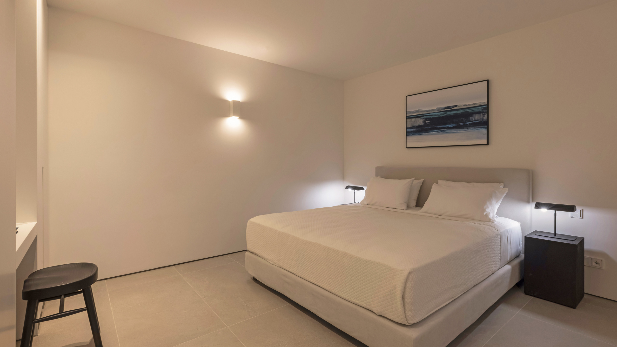 Inside, Myrtle East exudes a modern and minimalist charm. The atmosphere is serene, and the layout is both practical and inviting, with communal spaces that flow effortlessly into the outdoors, creating a seamless connection with nature and flooding the interiors with natural light. The bedrooms are spread across three levels, following the traditional island architecture. Each room is designed with comfort and contemporary elegance in mind, offering all the amenities expected from a high-end property.