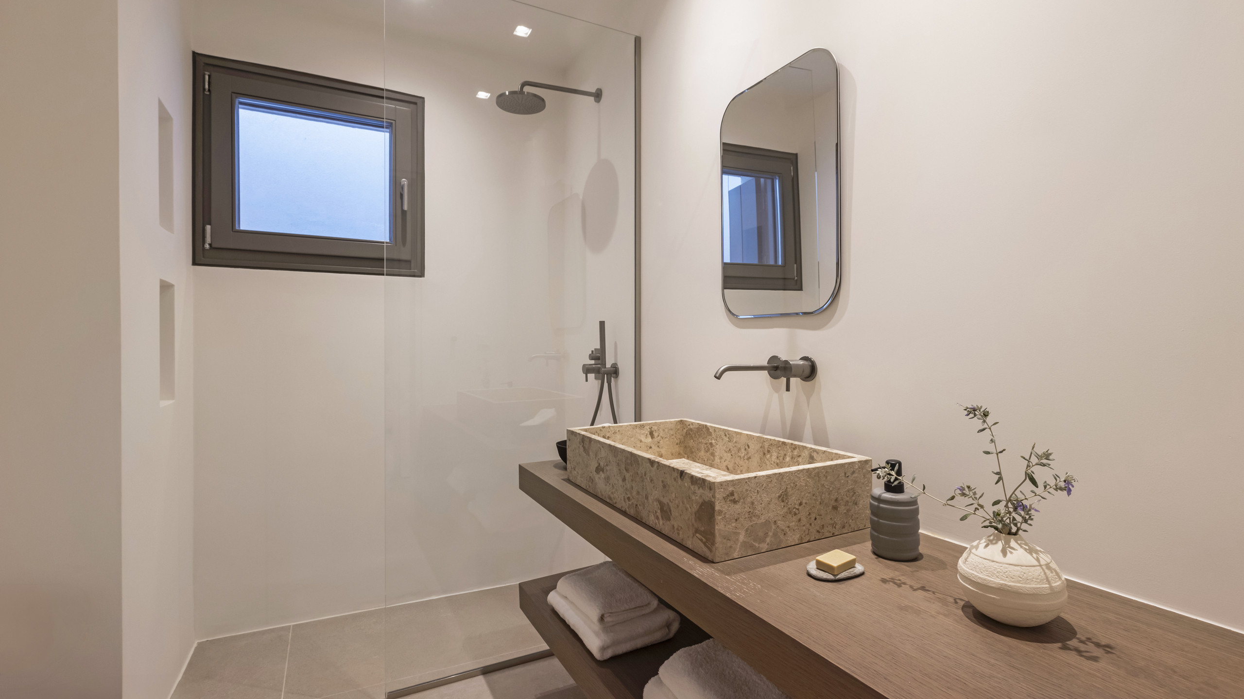 Myrtle East, particularly when paired with its twin Myrtle West, is an ideal getaway for young, energetic travelers who value its chic, modern design and its proximity to some of Paros’ most popular destinations. These include the expansive sands of Santa Maria Beach and the vibrant town of Naoussa, renowned for its eclectic mix of restaurants, bars, and shops that cater to every preference.