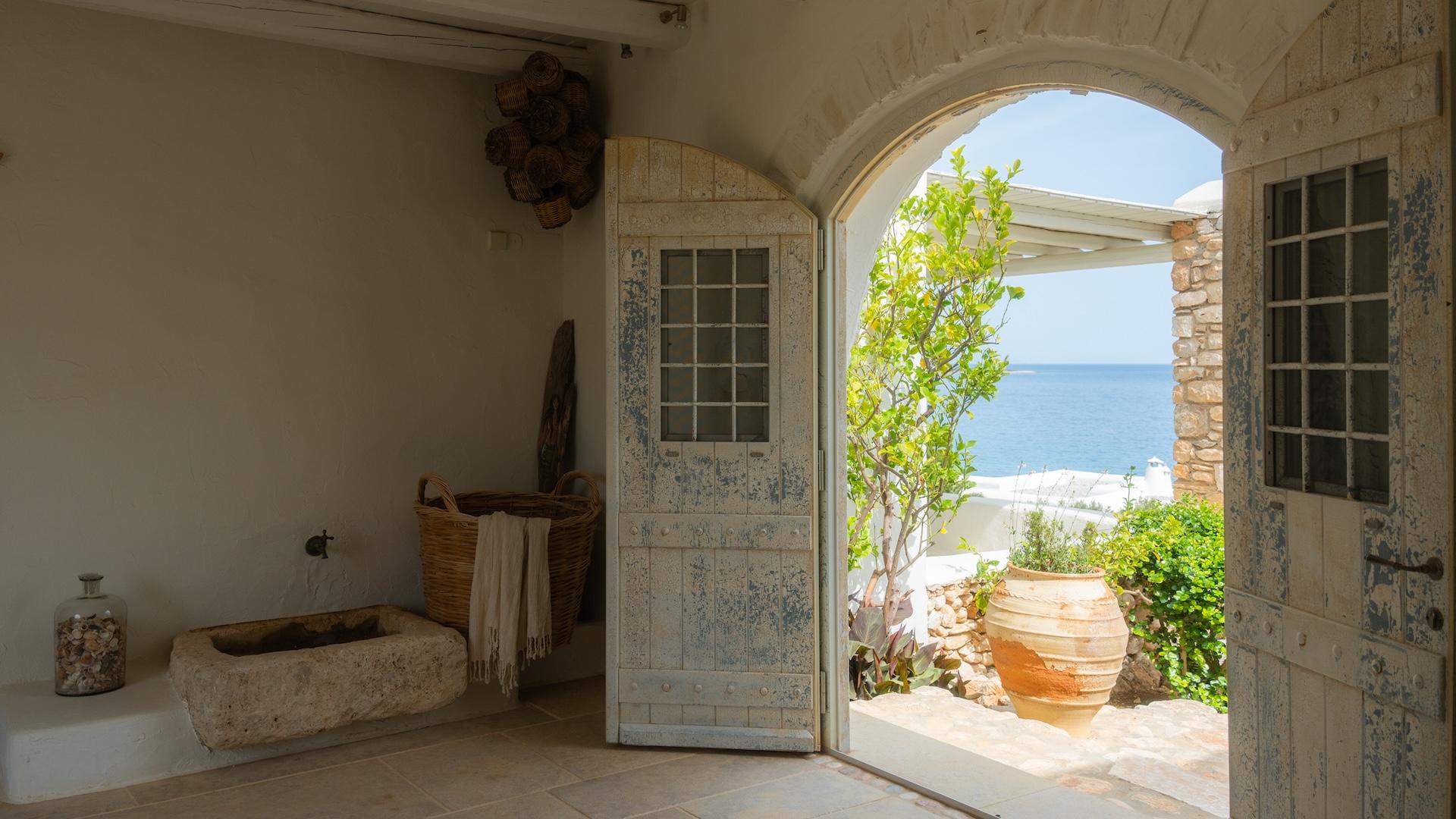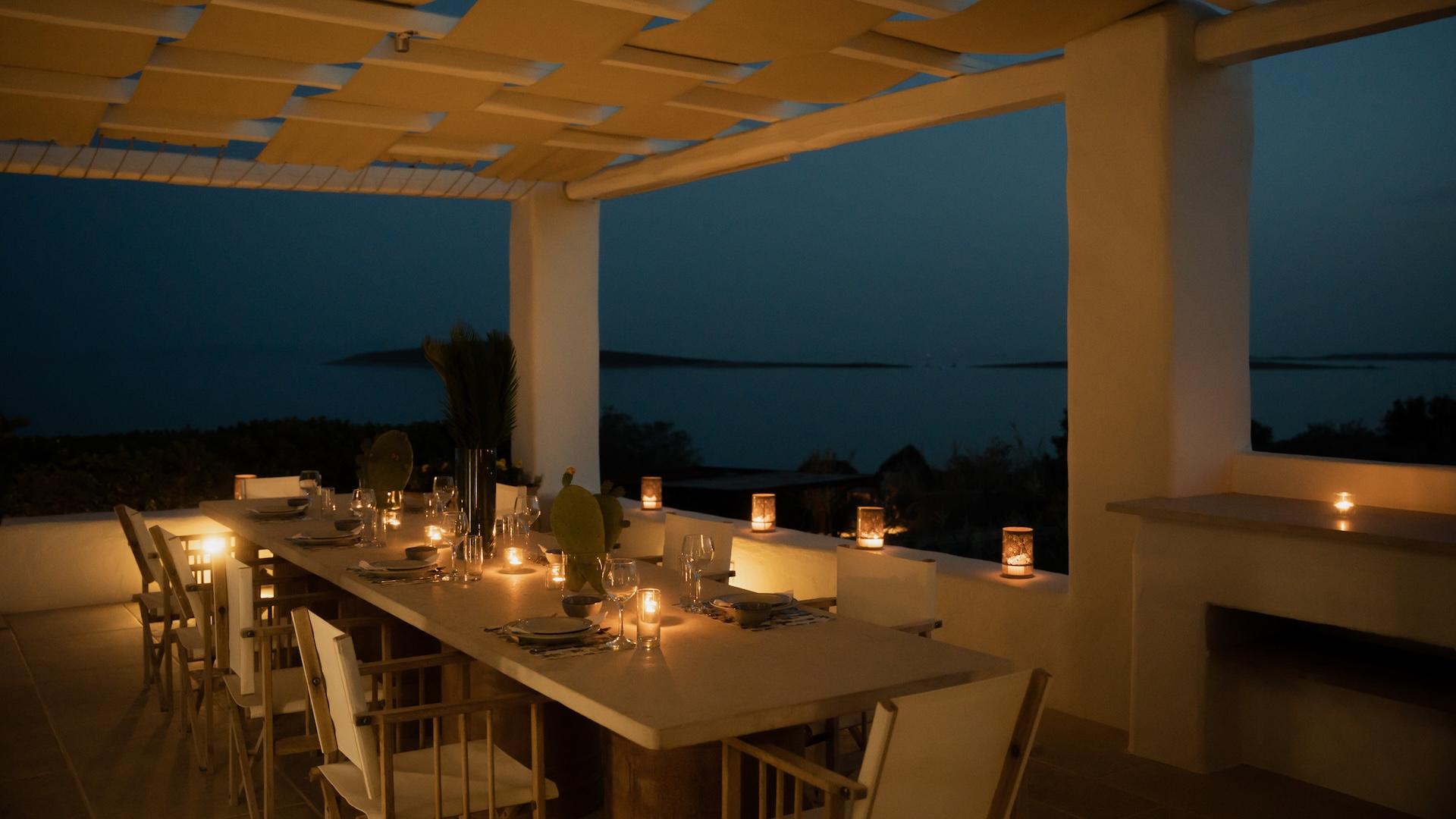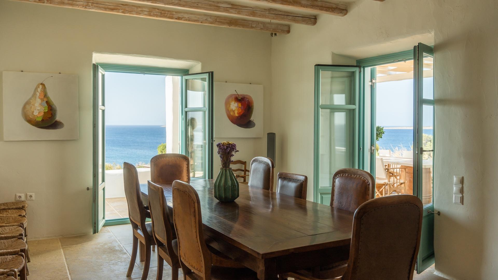 Your stay is defined by effortless style, featuring a private 60 m² swimming pool and a dedicated staff to provide daily cleaning and professional cooking services for every meal. The outdoor oasis is designed for entertaining, boasting a 16-seat dining area equipped with a traditional wood oven and a high-end Sonos sound system that flows from the lounge to the water's edge. Perfectly positioned just minutes from the charming village of Alyki and the golden sands of the beach, this villa offers a seamless blend of secluded tranquility and easy island exploration.