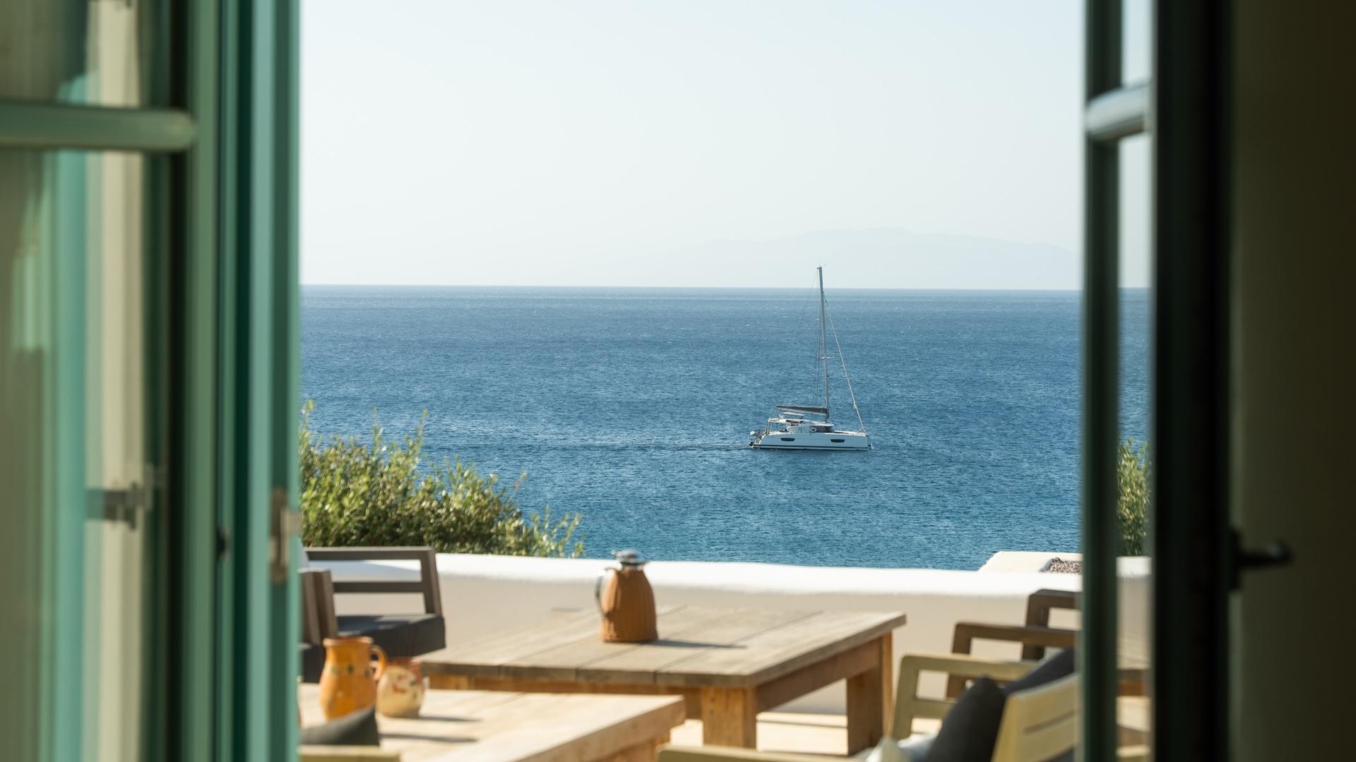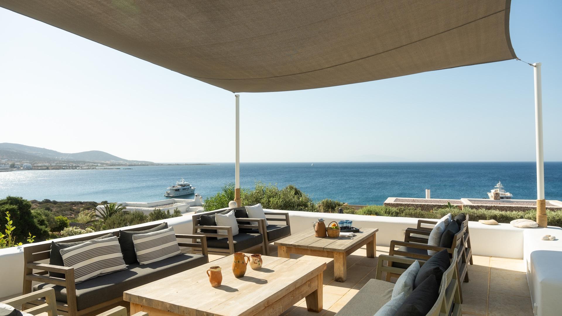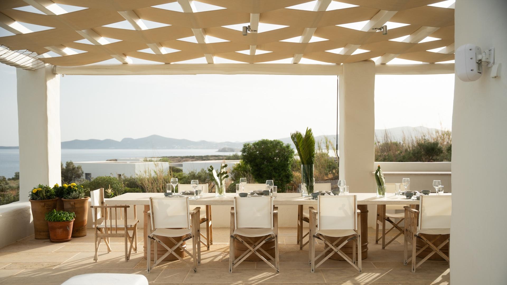 Your stay is defined by effortless style, featuring a private 60 m² swimming pool and a dedicated staff to provide daily cleaning and professional cooking services for every meal. The outdoor oasis is designed for entertaining, boasting a 16-seat dining area equipped with a traditional wood oven and a high-end Sonos sound system that flows from the lounge to the water's edge. Perfectly positioned just minutes from the charming village of Alyki and the golden sands of the beach, this villa offers a seamless blend of secluded tranquility and easy island exploration.