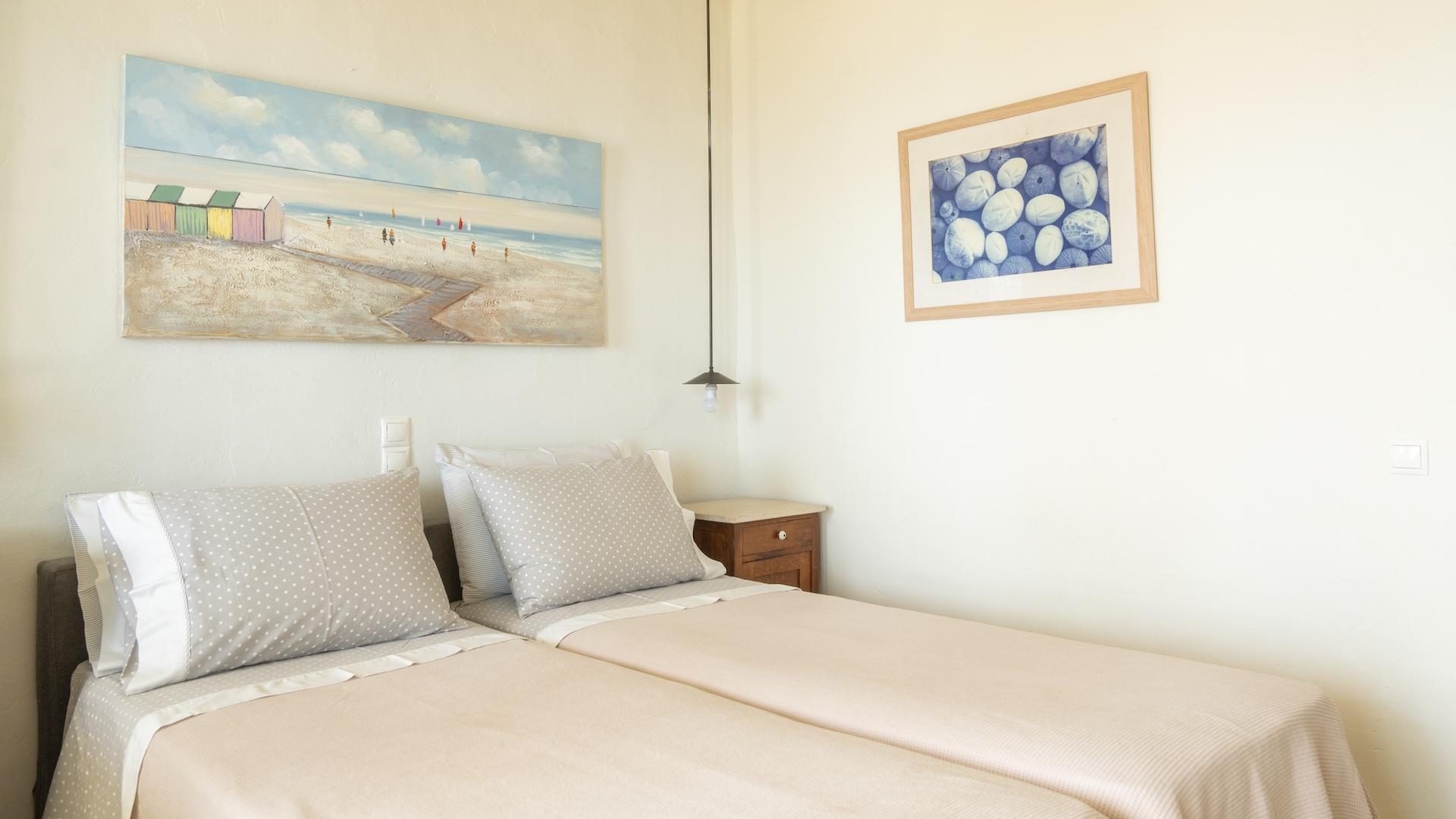 1 Guest Bedroom with twin beds, A/C, private separate bathroom (shower). Direct access to a small private terrace with sea view
