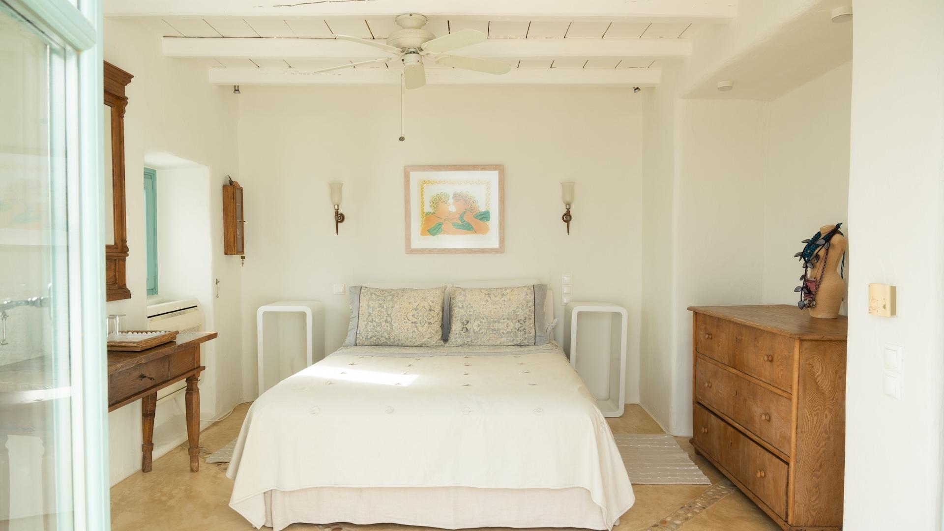 1 Guest Bedroom with King size bed, A/C and en-suite bathroom (shower). Direct access to a small private terrace with sea view