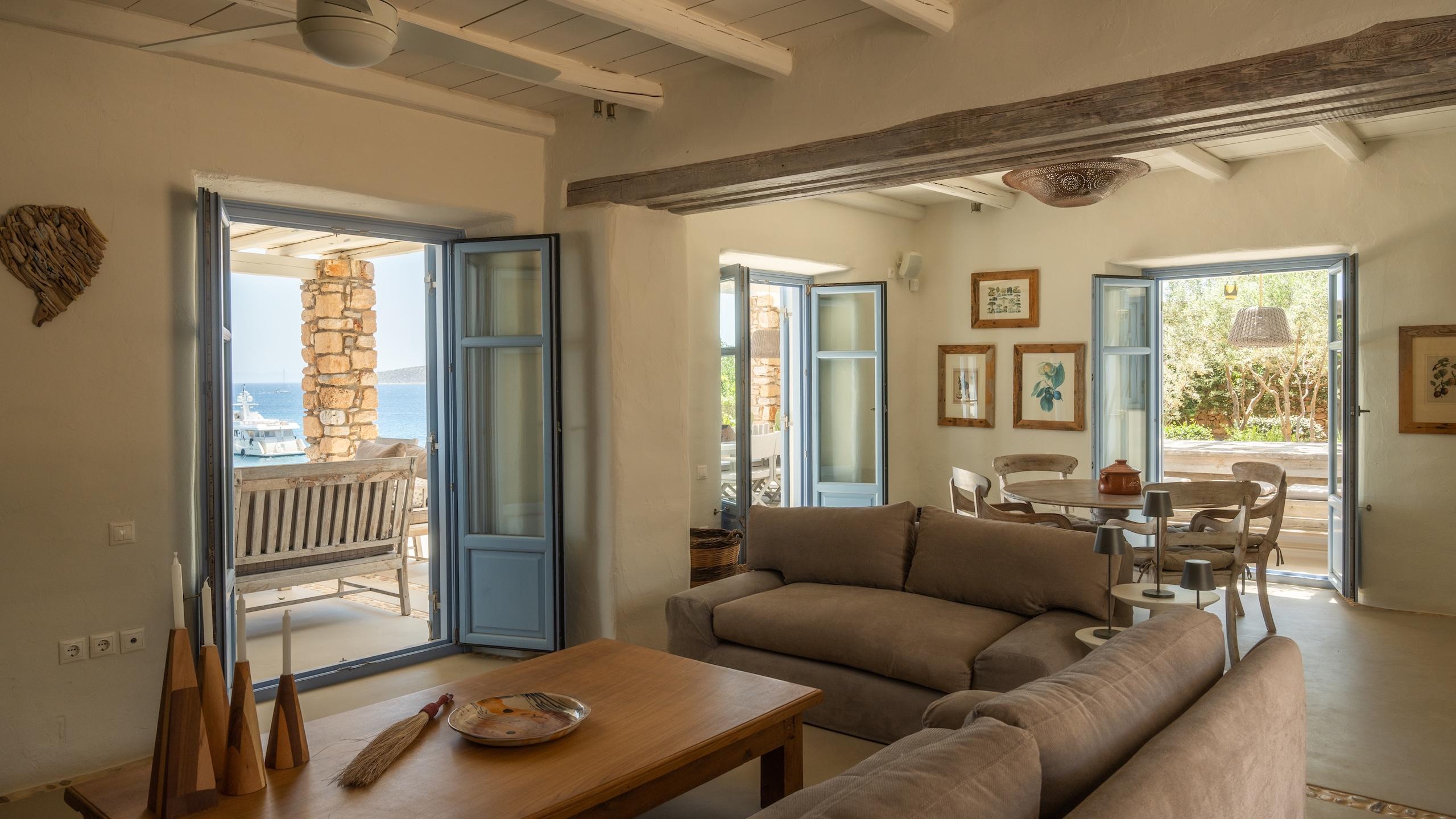Set just 30 meters from the shimmering Aegean, Waterfront South is a 200 m² seafront sanctuary that perfectly blends traditional Cycladic charm with modern luxury. The villa is nestled within a vast 6,600 m² estate, offering three well-appointed bedrooms and a spacious terrace designed to capture breathtaking views of the sunset and moonrise. Whether you are relaxing in the inviting living spaces or exploring the three secluded beaches just steps away, this property ensures a serene and private coastal escape.